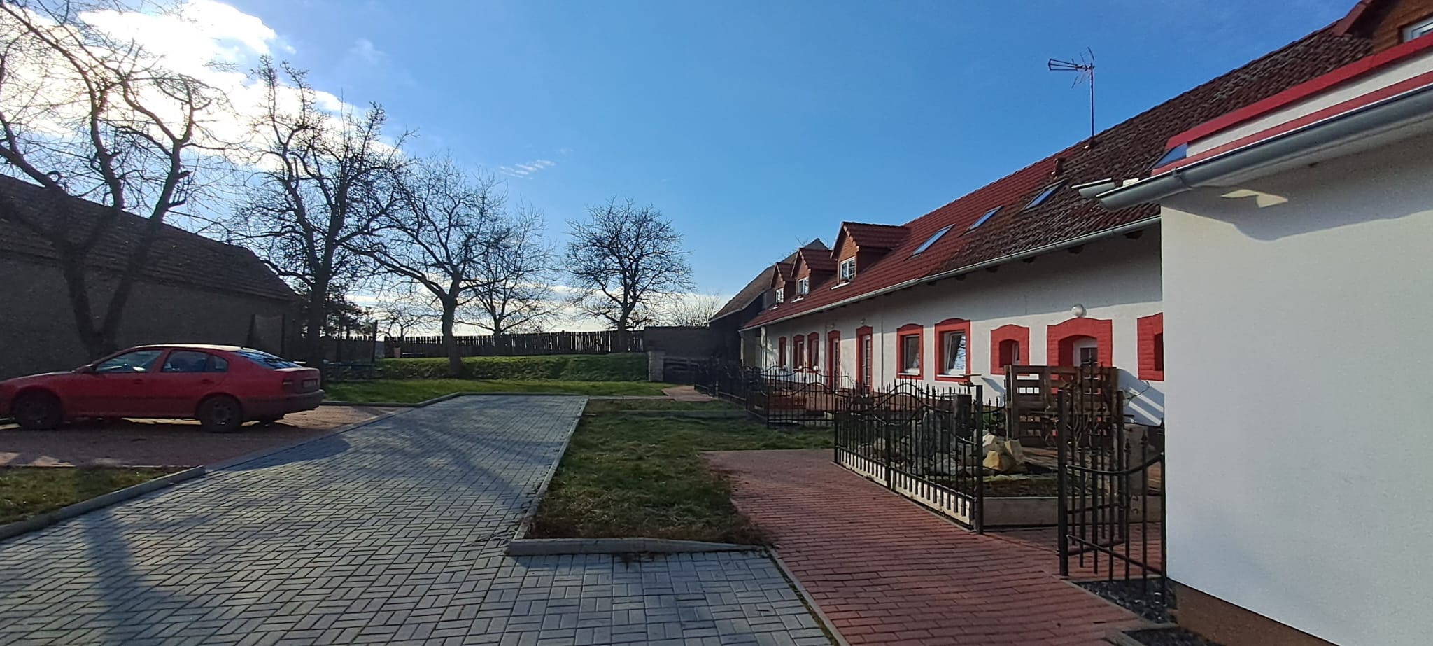 K bytu náleží jedno parkovací místo v uzavřeném areálu u domu. Veškerá občanská vybavenost se nachází v nedaleké obci Peruc.