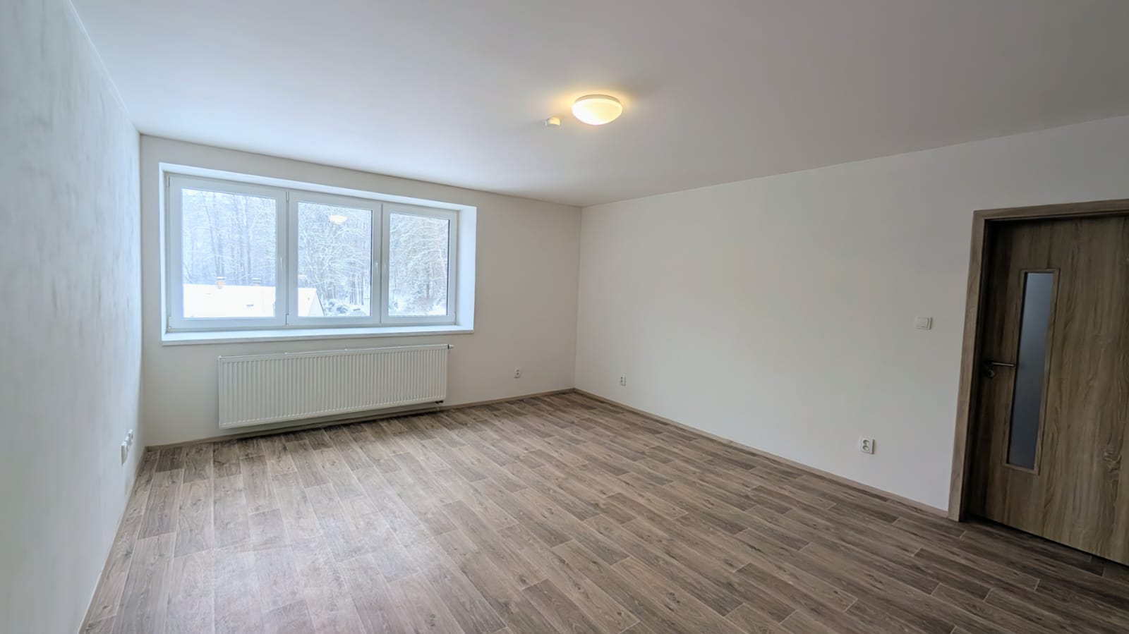 Vytápění i ohřev teplé vody jsou řešeny tepelným čerpadlem, což zajišťuje úsporné a komfortní bydlení. Z bytu je příjemný výhled do lesa, který umocňuje klidnou atmosféru bydlení. Lokalita nabízí blízkost koupaliště a přírody, ideální pro relax i aktivní trávení volného času.