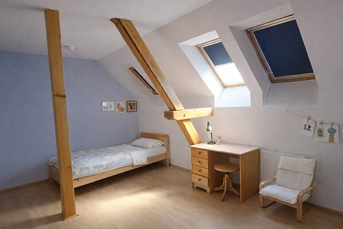 V patře se nachází dva samostatné pokoje.