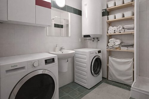 K bytu náleží jedno parkovací stání přímo před domem. Na společném pozemku je k dispozici pergola s možností posezení a grilování. Byt je k dispozici od května.
