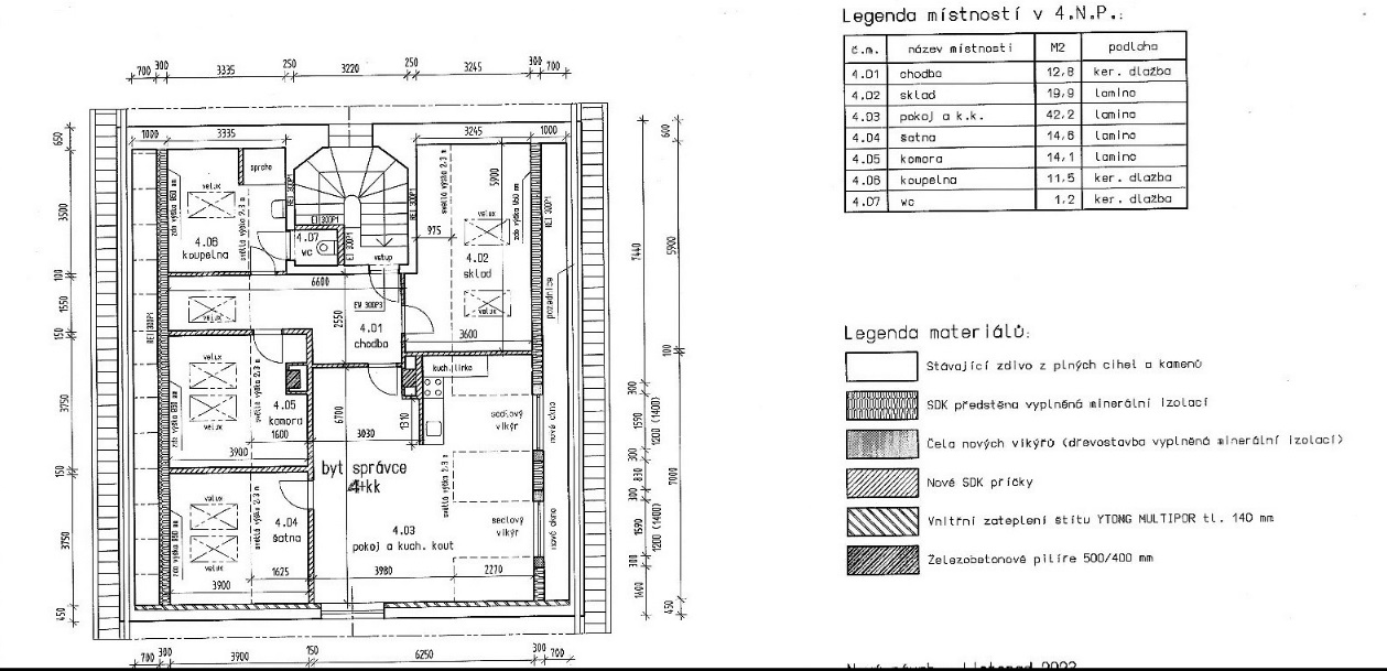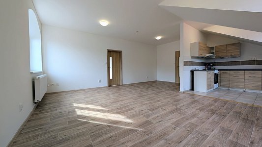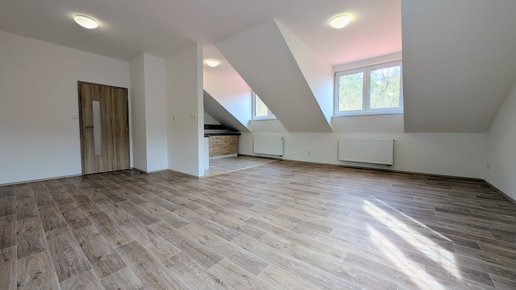 Nabízíme k pronájmu velmi prostorný a světlý podkrovní byt o dispozici 4+kk a výměře 116 m2, který se nachází ve 4. nadzemním podlaží bytového domu bez výtahu, v klidné části obce Peruc. Příjemným bonusem je umístění domu naproti koupališti a zároveň veškerá občanská vybavenost v docházkové vzdálenosti.